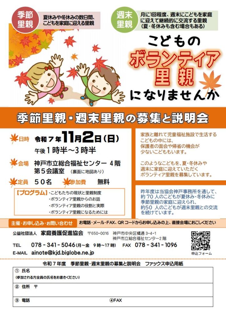 例年、家庭養護促進協会 神戸事務所をとおして、