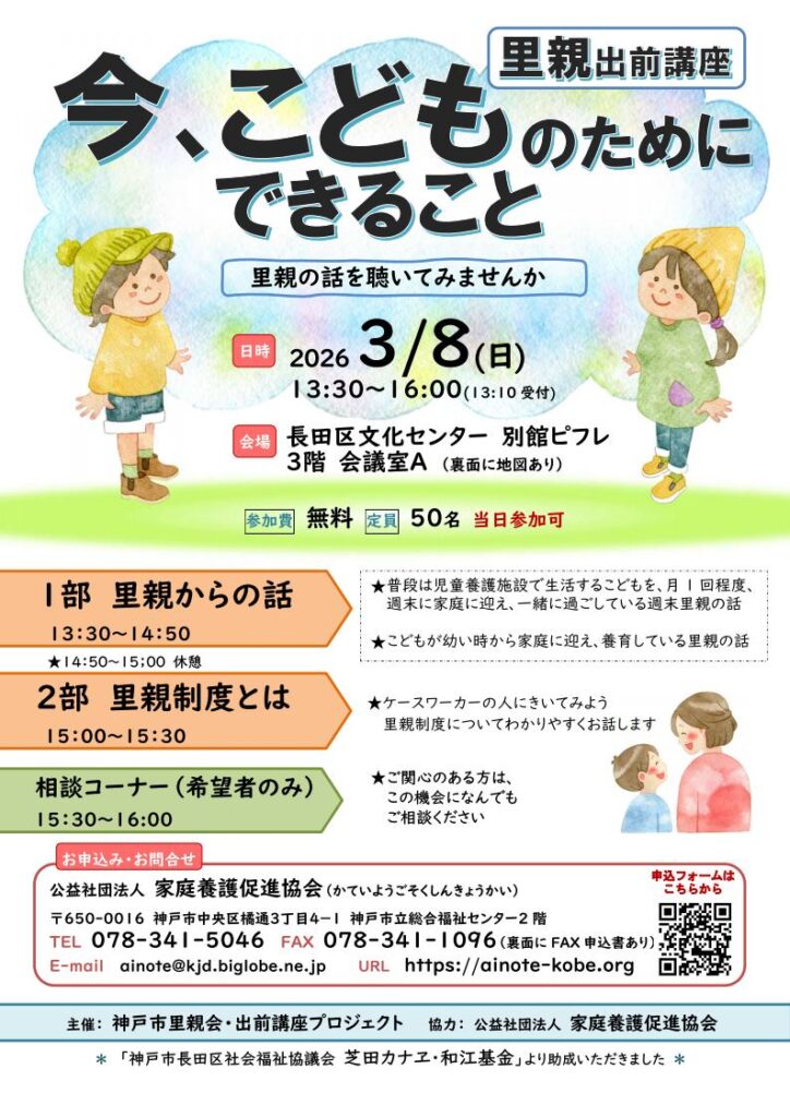 里親出前講座「今、こどものためにできること」2026/3/8(日) 当日参加可